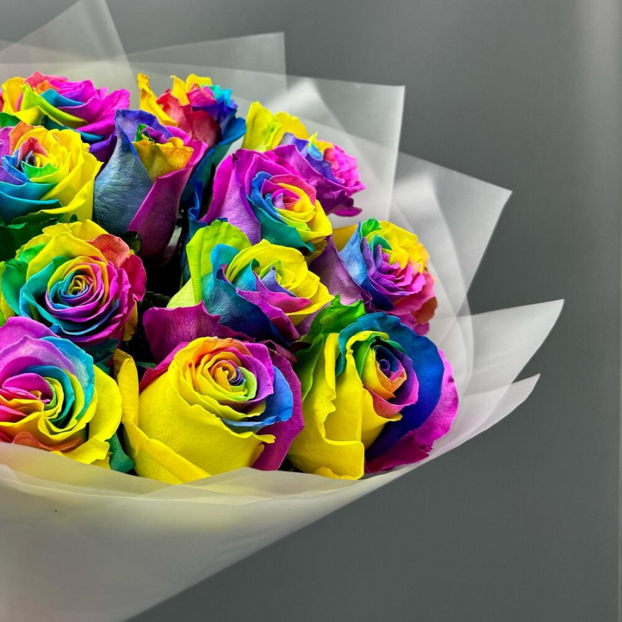 Часто выбирают Розы Радужные розы 15 роз