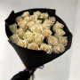 На фото букет из 27 белых роз. В составе: роза 27 шт, крафт-бумага 1 шт, атласная лента 1 шт, . Все цветы свежие и ароматные, букет красиво оформлен и отлично подходит для подарка. Доступна доставка цветов или самовывоз.