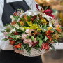 На фото корзина с альстромерией микс. В составе: альстромерия 35 шт, корзина (m) 1 шт, атласная лента 1 шт, . Все цветы свежие и ароматные, букет красиво оформлен и отлично подходит для подарка. Доступна доставка цветов или самовывоз.